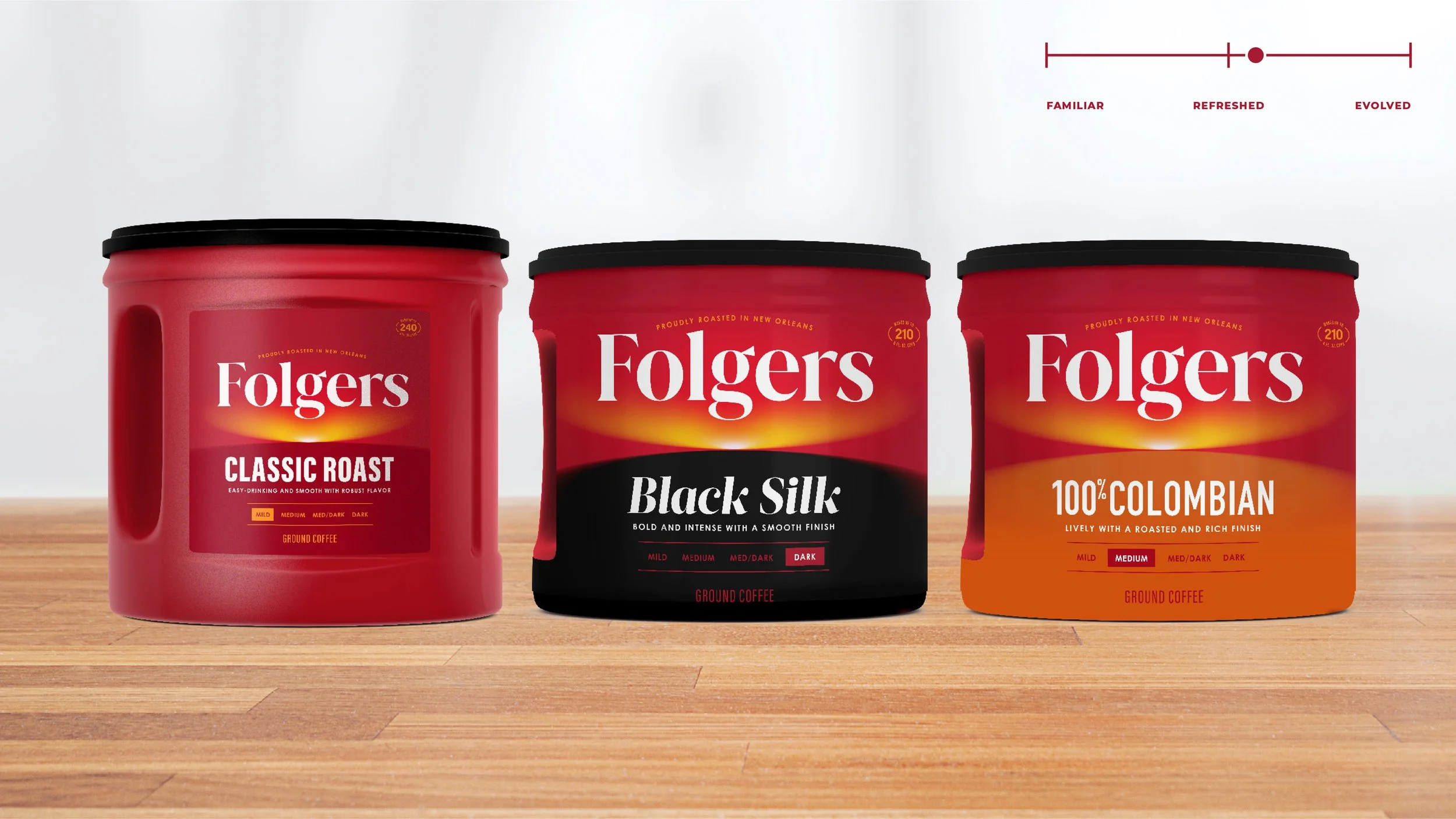 After previously exploring and testing a more transformational and revolutionary brand update, the client decided to pursue a more evolutionary approach to its portfolio redesign for the brand, with the intent to simply bring out the best in Folgers.